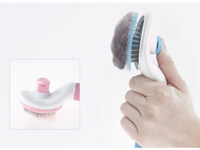 - Dzięki wbudowanemu przyciskowi szybkiego czyszczenia, proces pielęgnacji staje się bardziej komfortowy zarówno dla Ciebie, jak i dla zwierzaka. Redukcja stresu podczas wyczesywania sprawia, że zwierzę odczuwa mniejszą niepewność i łatwiej akceptuje zabieg.