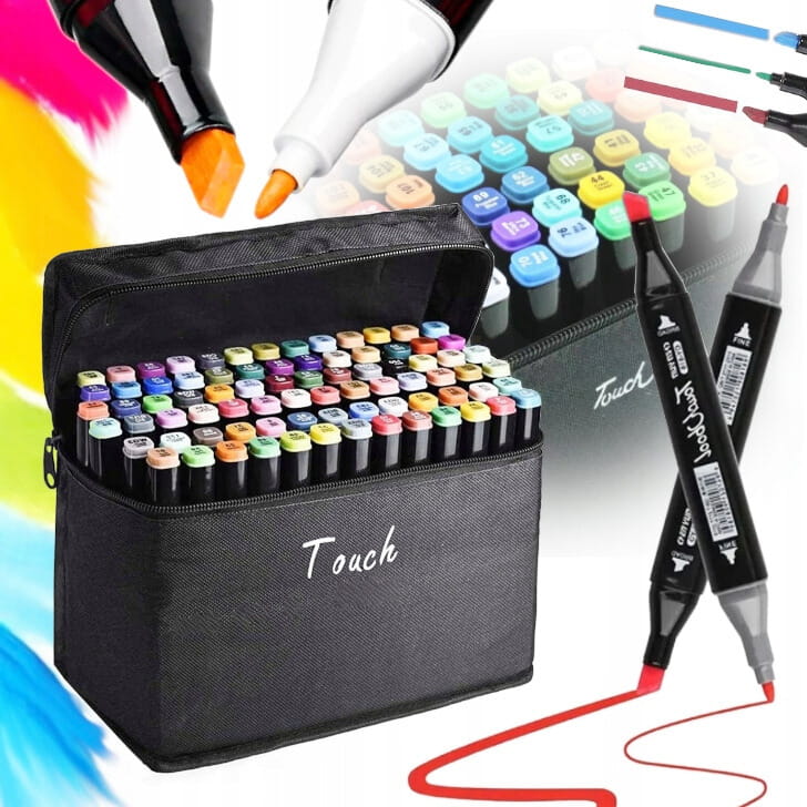 MARKERY ALKOHOLOWE 60 SZT Flamastry Mazaki Pisaki Dwustronne Pro + TORBA