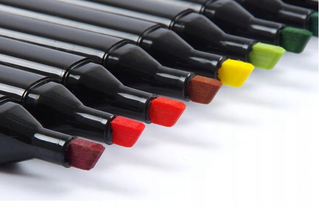 1️⃣ DWIE KOŃCÓWKI - Szeroka i płaska oraz cienka i punktowa, dają ogromne możliwości twórcze. Końcówki wykonano z bardzo trwałego tworzywa, dzięki czemu markery będą służyć przez bardzo długo.