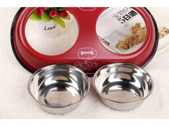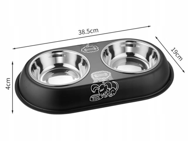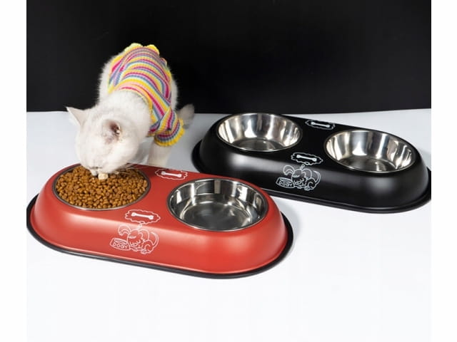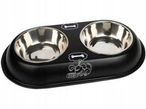 Podwójna miska metalowa dla psa i kota - CZARNA