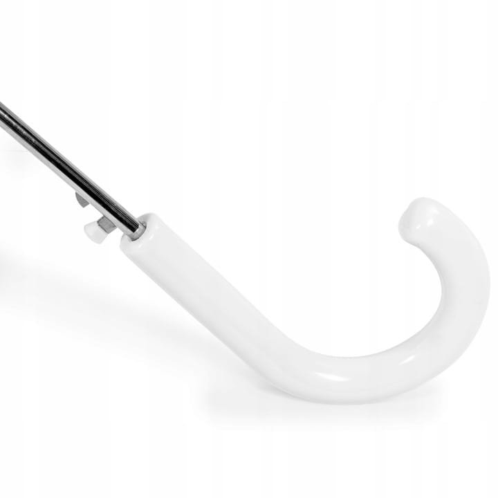Zagięta rączka – ułatwia pewny chwyt i gwarantuje wygodę noszenia oraz trzymania; dzięki zagiętej rękojeści parasol można z łatwością powiesić np. na wieszaku, co ułatwia jego przechowywanie i ociekanie z wody.
