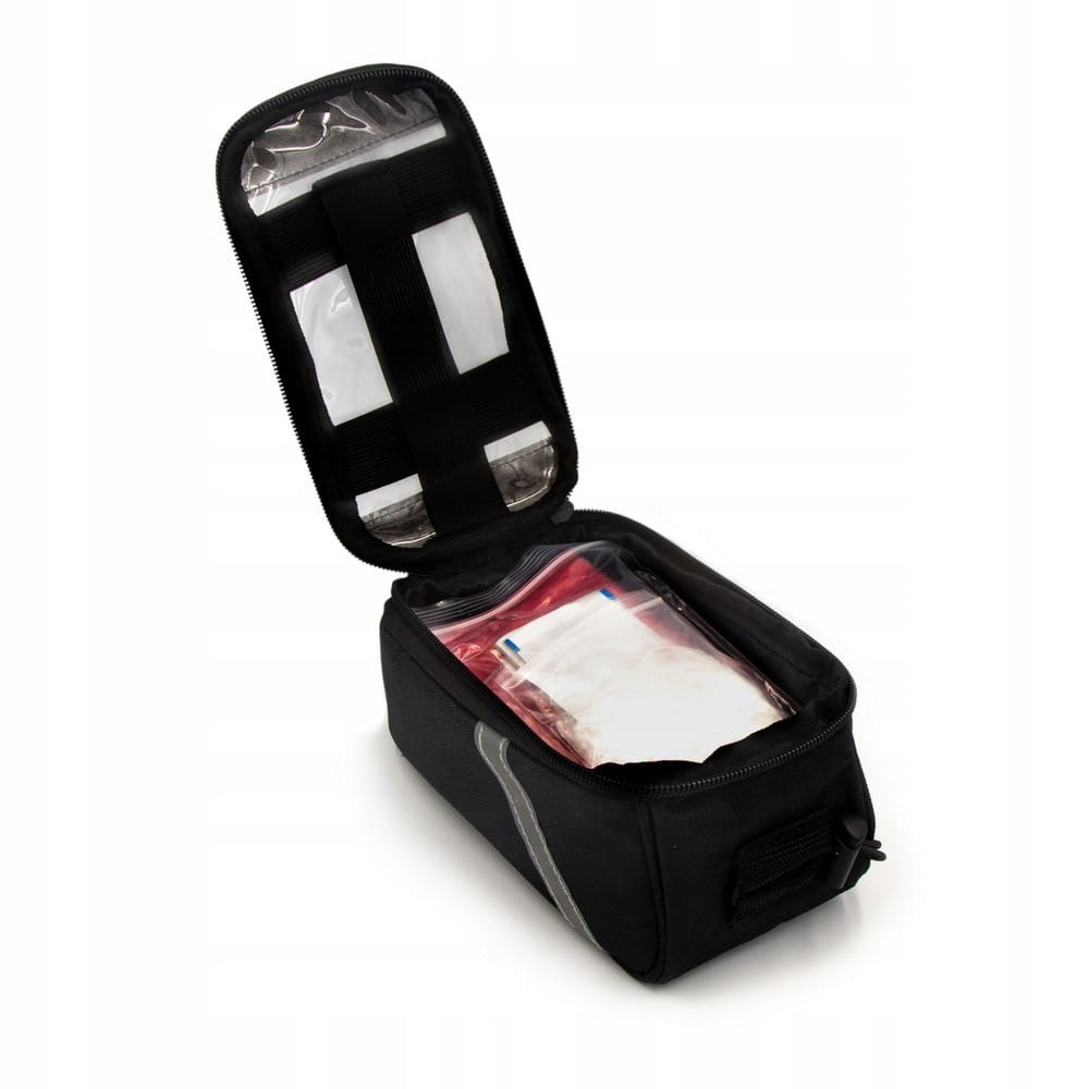 Torba rowerowa z wyposażeniem, nylon 600D, czarny