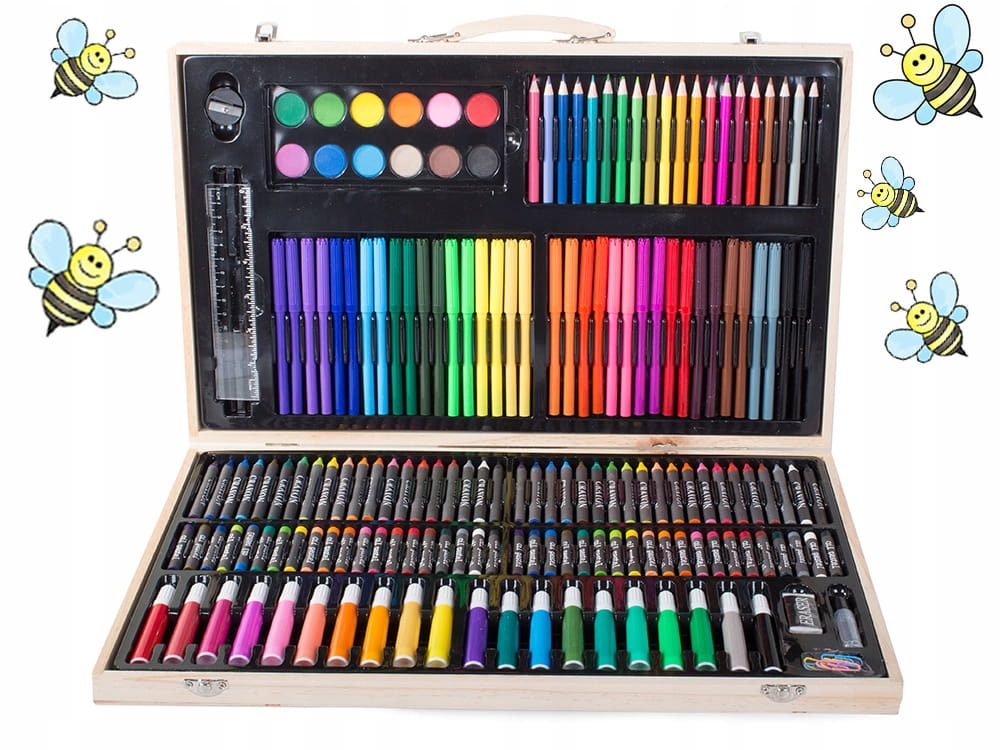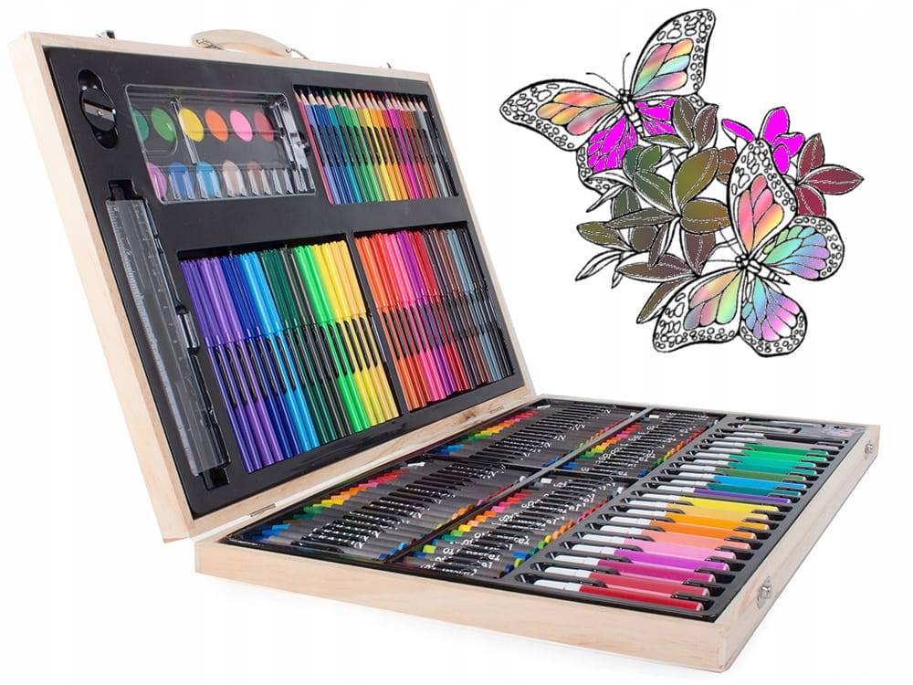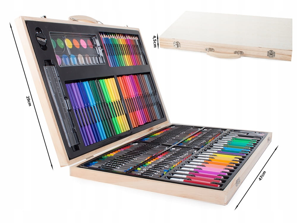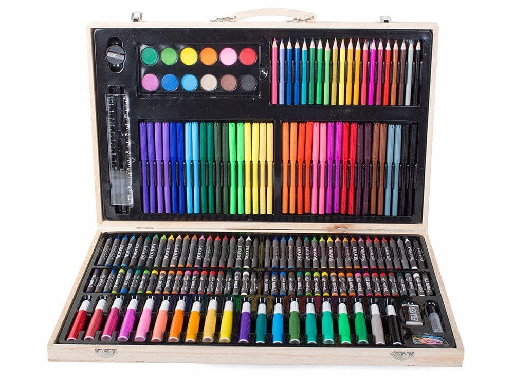 ZESTAW ARTYSTYCZNY DO MALOWANIA W WALIZCE 180 SZT DREWNIANA WALIZKA