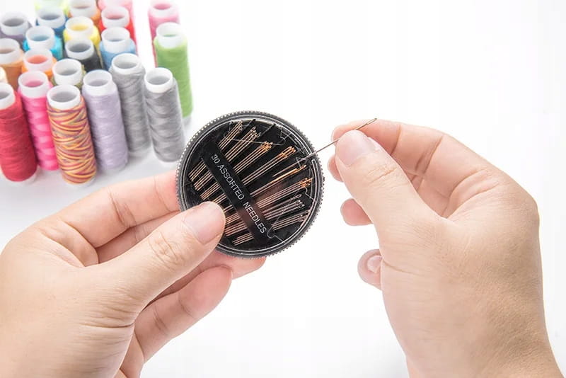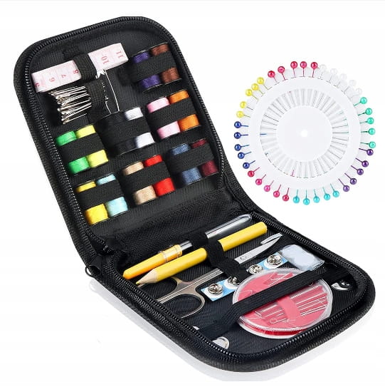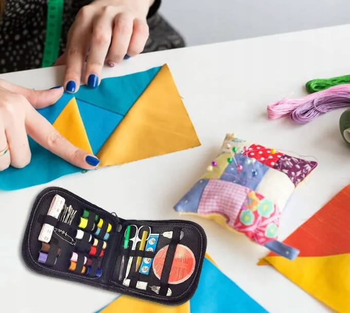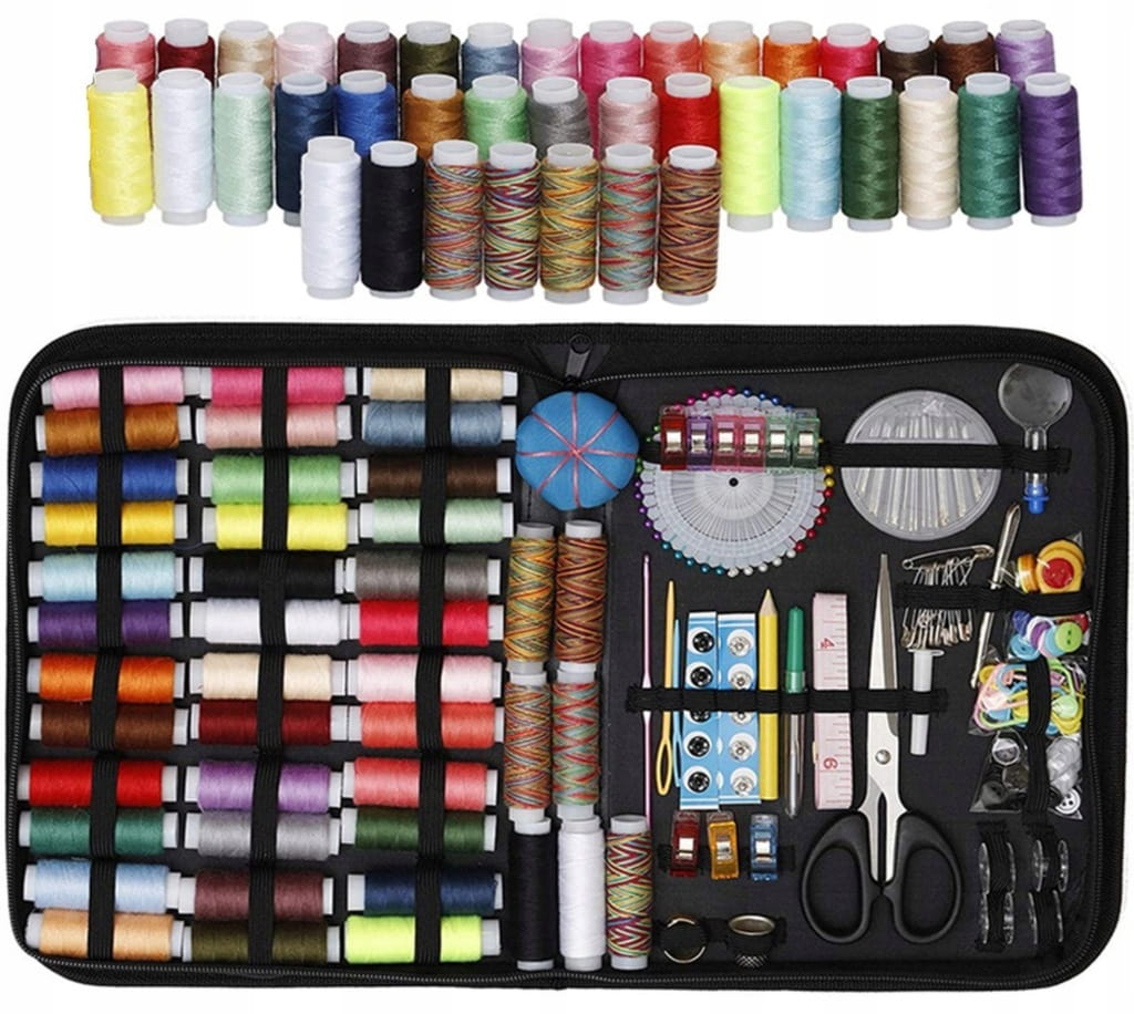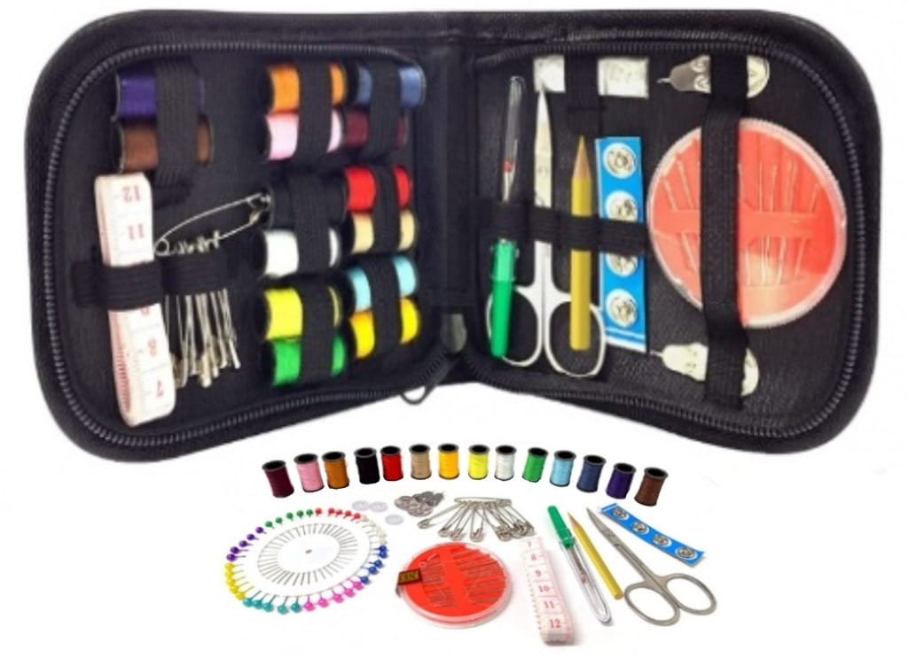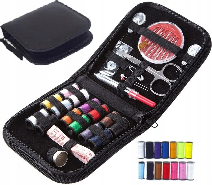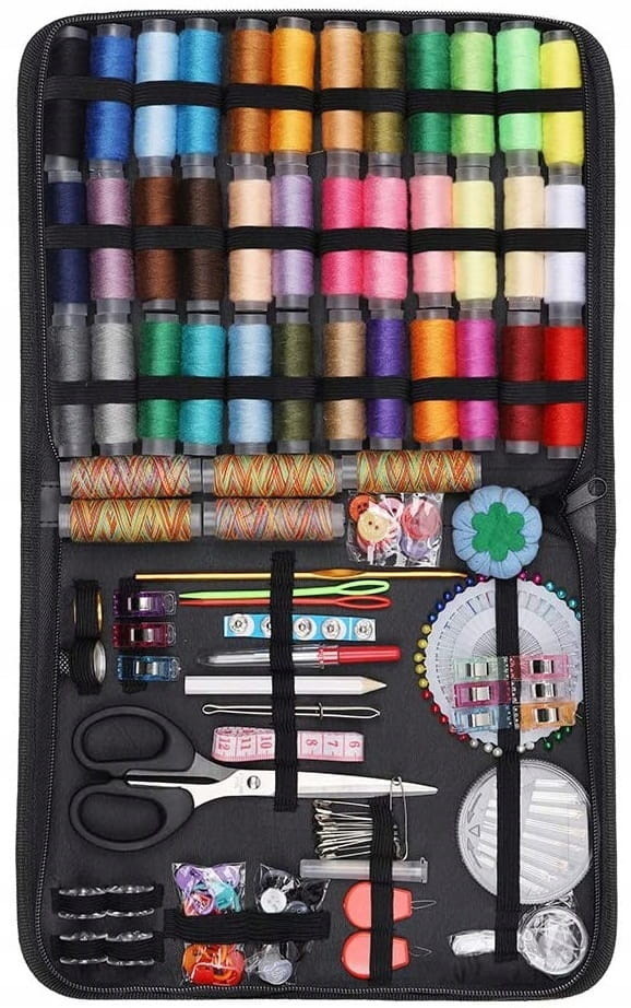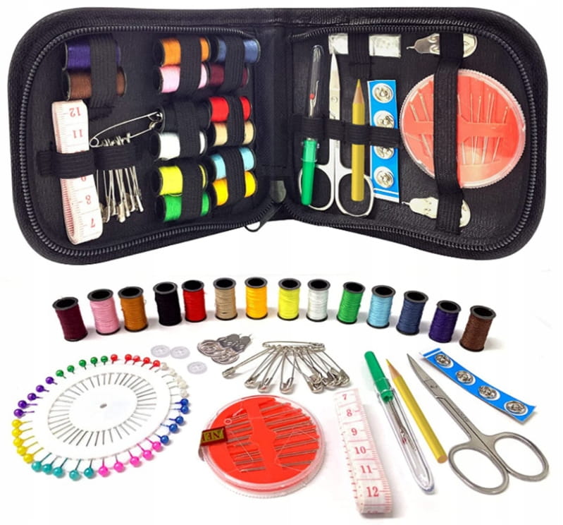 Przybornik krawiecki zawiera wszystkie niezbędne elementy potrzebne do szycia w jednym etui: nożyczki, nici, szpilki, igły, naparstek, nawlekacz do igieł, taśmę mierniczą i wiele innych akcesoriów, których możesz potrzebować w nagłych wypadkach.