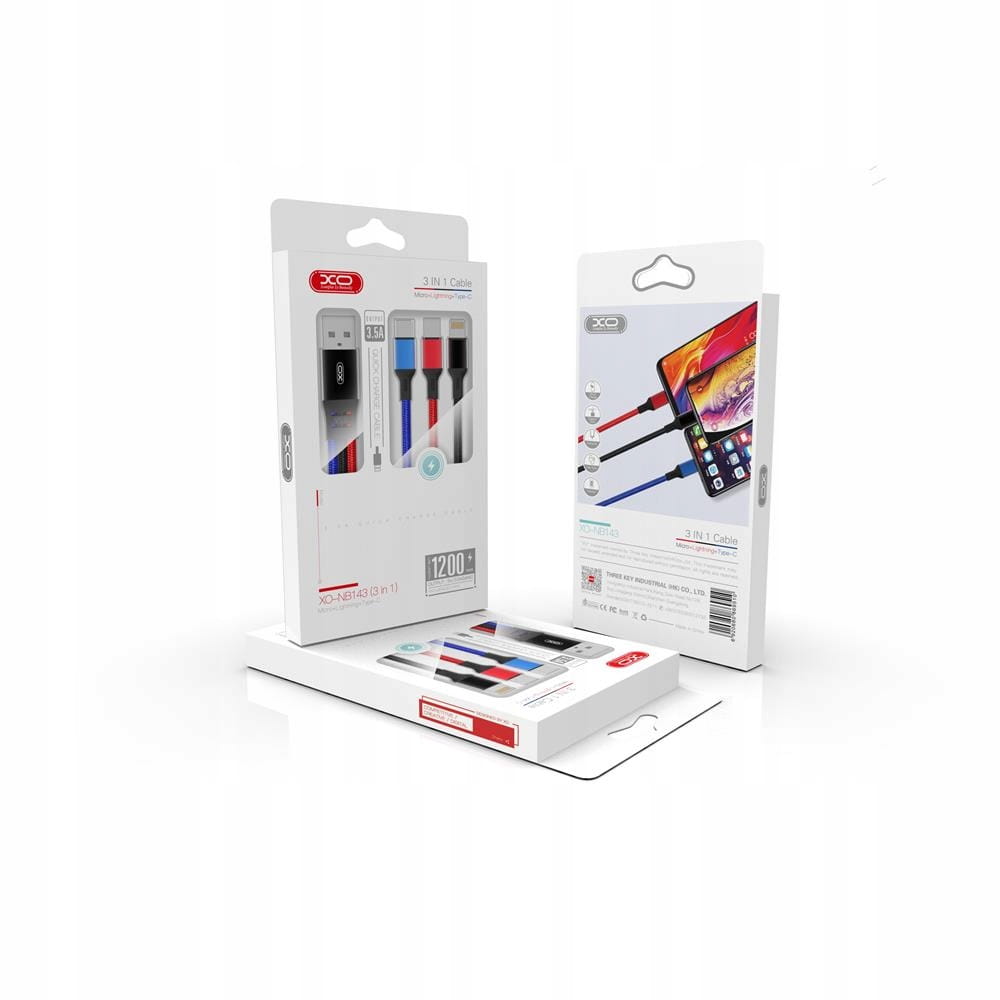 kabel 3w1 USB - Lightning + USB-C + microUSB 1,2 m
